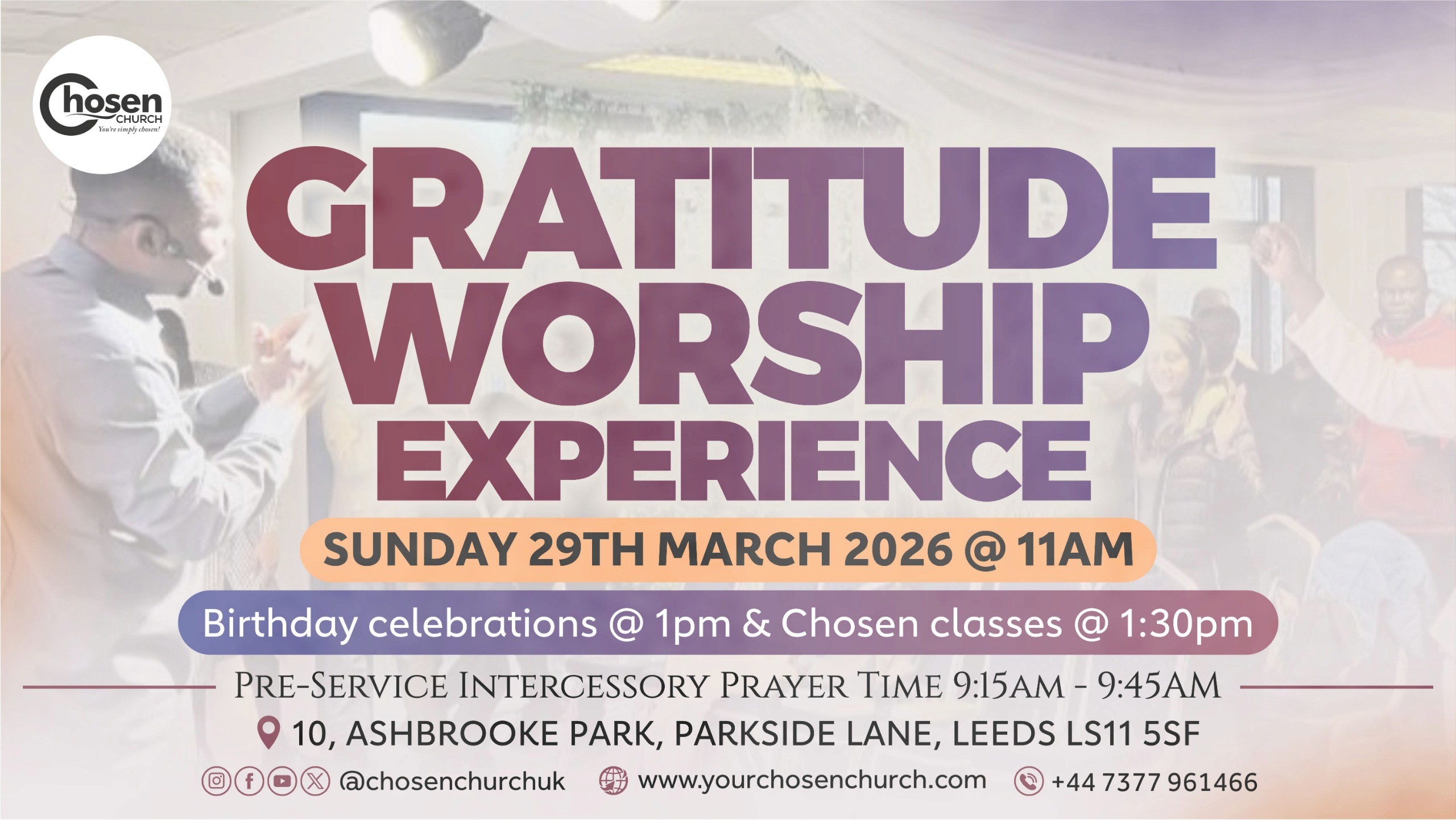 Join us for another time in God's presence by on Sunday, 29th March 2026.