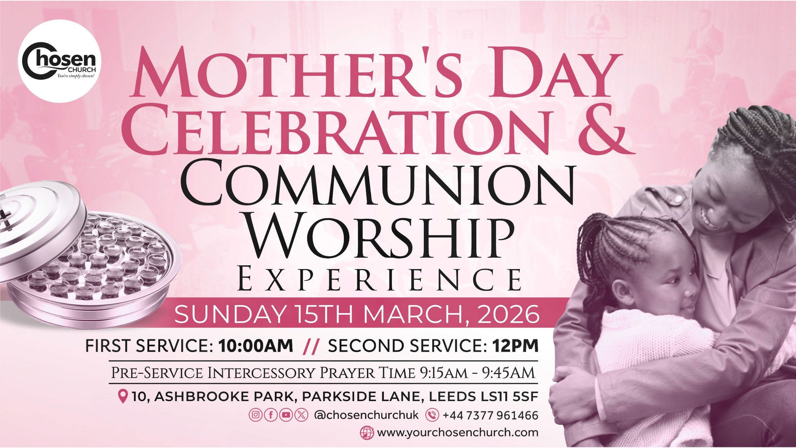 Join us for another time in God's presence as we celebrate our Mothers on Sunday, 15th March 2026.