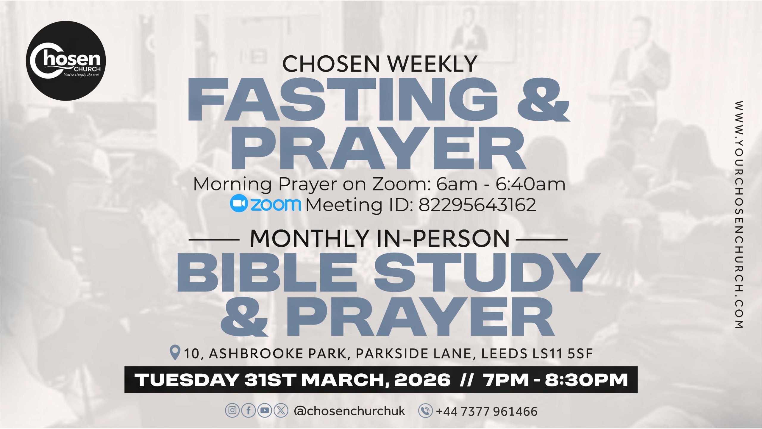 Weekly Fasting & Prayer - In Person Bible Study & Prayer. 31st March