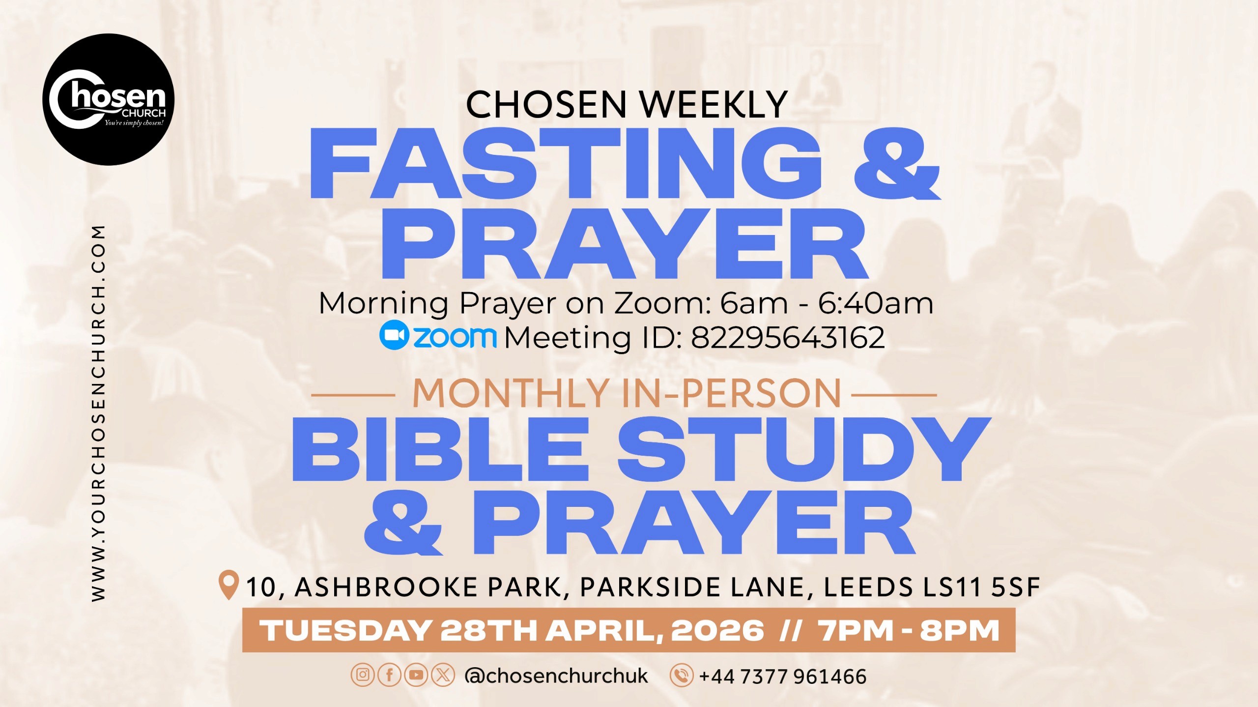 Join us for a time of Prayer every Tuesday, by 6am and Online Bible Study by 7pm.